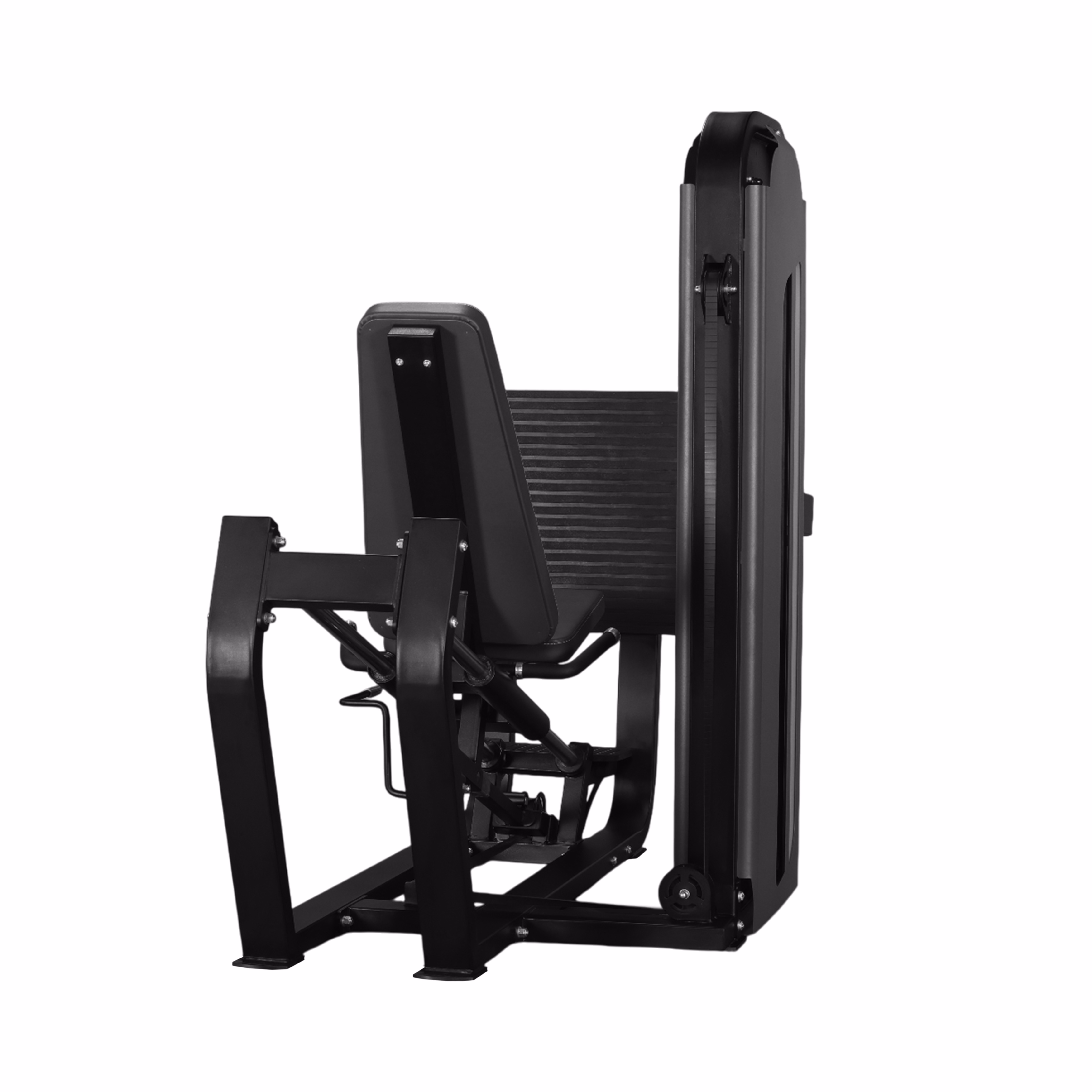 A large seat and footplate are provided for better range and stability. The advanced design reduces spinal compression while allowing full range of motion in the movement. The Jerai Fitness Seated Leg Press provides weight stack upto 400 lbs.